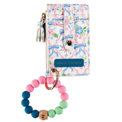 Keep your keys and wallet handy with our cute bangle bead wallet. Wallet includes card slots and a snap protector plus a zipper pouch for coins.