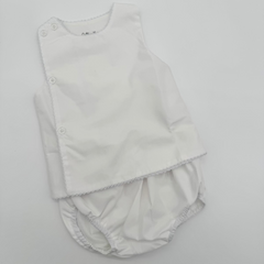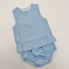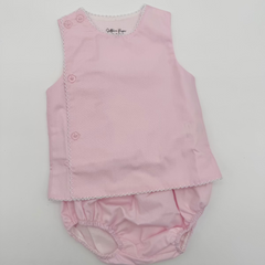 New 2pcs Diaper Set. This classic Blue, Pink and White diaper set with added picot trim will be your got to this summer! Classic staple piece and perfect for a simple or extravagant embroidery