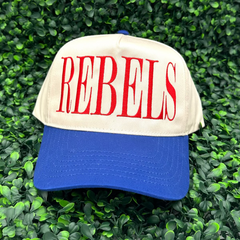 Show your team spirit in style with our bold two-tone Rebels hat! Featuring a crisp red “REBELS” design across the front and a contrasting color combination that stands out, this hat is perfect for game days, tailgates, or everyday wear.