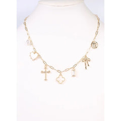 This stunning link necklace features seven amazing charms, and it will easily accessorize any daytime or evening outfit.