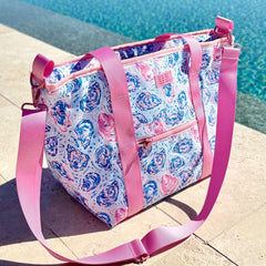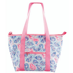 This versatile and large cooler tote is insulated and comes with top handles and a detachable crossbody strap for easy carrying. Two outer pockets for extra storage. Perfect for the beach, pool or sporting events.