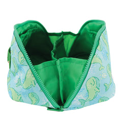 This lay flat cosmetic bag is perfect for all of your travel needs. Features a fully lined interior, divided interior and pockets to keep all of your cosmetics organized.