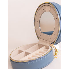 The perfect travel jewelry organizer that super easy to toss in your bag for a weekend away or a vacation! Featuring a soft interior ring, earring and necklace storage with an interior mirror.