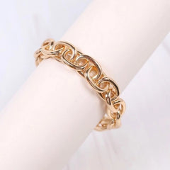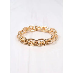 This simple bracelet has interlocked links and stretches to fit most wrists. Wear alone or in a stack with other bracelets.