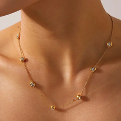 Sparkle all day long with this dazzling 18K Stainless Rhinestone Necklace! Studded with charming rhinestone pendants stationed along a delicate...