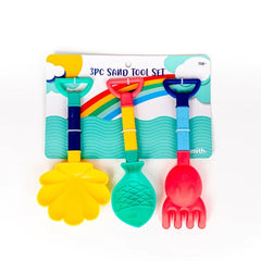 Toysmith’s 3-Piece Sand Tool Set includes two small shovels and a rake to stir and scoop up sand during your beach day or time in a sandbox. The shovels are shaped like a seashell, a fish, and an octupus (set includes one of each). Whether digging for treasures, burying time capsules, or other pretend play, this set is sure to enhance any day in the sand. Items are made of plastic.