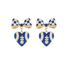 Show your team spirit with these adorable Game Day Football Heart Earrings! Featuring charming epoxy hearts in classic blue and white, each pair dangles with tiny football charms that celebrate your love of the game. Perfect for game day, tailgates, or any time you want to rep your favorite sport with style. Lightweight and fun, these earrings are a touchdown for any football fan's jewelry collection.
