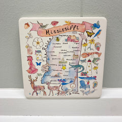Get ready to make a splash with our Mississippi Map Coasters! These square stone coasters feature a watercolor illustration of the iconic river, adding a touch of charm to your home decor. And with a cork back, you can rest easy knowing your surfaces are protected while enjoying your favorite beverage. Cheers to that!