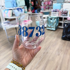 Introducing the 38732 Shatterproof Wine Glass: sip in style without the worry of broken glass! This stemless wine glass features a playful "38732" print and is shatterproof, perfect for any occasion. Say goodbye to accidents and hello to worry-free sips. Cheers!