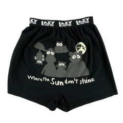 Anyone needing laugh would love our Where the Sun Don't Shine boxers! They even glow in the dark! Made from soft 100% combed cotton knit, our boxers have a roomy fit with a button fly and an exposed elastic band. It's easy to see why the butt stops here!