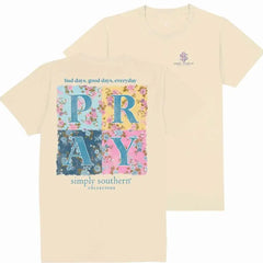 From $19.99Natural tan short sleeve shirt with the phrase 'bad days, good days, everyday pray' with the letters of the word... View Details -