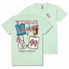 From $19.99Mint green short sleeve shirt with the phrase LIVING THE SCRUB LIFE and an array of medical items with pink... View Details -