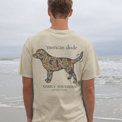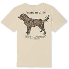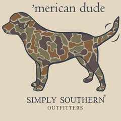 From $24.99Tan short sleeve shirt with the phrase ''merican dude' and the silhouette of a dog filled with camo pattern. Simply... View Details -