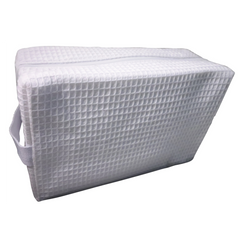 Large Cotton Waffle Cosmetic Bag. 9"x7"x3.5" with PVC liner and inner side pocket. These are perfect for embroidery, so personalize yours today!