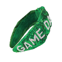 These stylish hairbands feature an assortment of jewels and pearls and a beaded GAME DAY!
