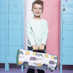 The perfect go to for nap time! The Hay Now Nap Mat is padded and lined with nylon and cotton, and includes a small pillow and super soft fleece blanket.  There's even a small pocket on the outside, perfect for monogramming!  With its quick roll design, it can be easily transported from home to school.