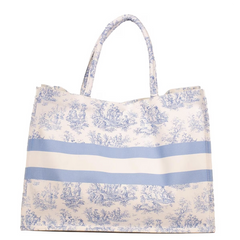 The Eden Toile Classic Tote in White/Blue is a stylish and spacious bag that is perfect for everyday use. With its dimensions of 19x14x7.5, it provides ample room for all your essentials while adding a touch of elegance to your outfit.