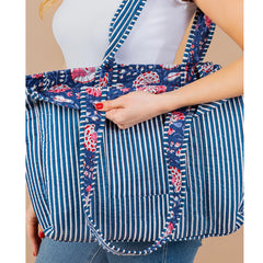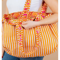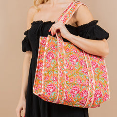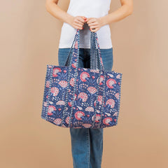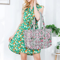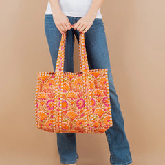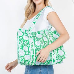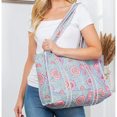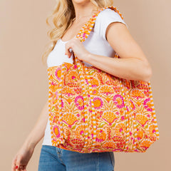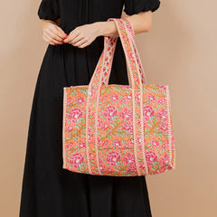 This sturdy quilted tote bag features a reversible and colorful flower design. It is stylish and versatile, perfect for different... View Details -