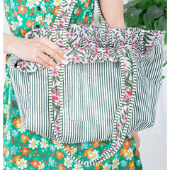 Indulge in luxury with our FORAL FLURRIES reversible tote bag, handmade with a floral-inspired print in India. Versatile and stylish,... View Details -
