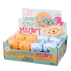 The Chubby Kitties Squishy Stress Relief Squish Ball from Toysmith comes in 2 assorted colors and features a smiling kitty face with a tongue, round-tipped pointed ears, and adorable stubby paws. Made of safe, soft foam, this kitten squish ball comes in a pack of 16, with 8 of each assorted color included inside a colorfully illustrated display case with the catchy phrase, Don’t Stress Meowt, on it. Available in orange and light blue color options, these are great for kids who are stressed, anxious, or struggling to focus. Use them to teach about cats or during musical activities. Their compact size and affordable price also make them a popular choice for kids’ birthday party favors, stocking stuffers, or simple small gifts for good behavior or just because.