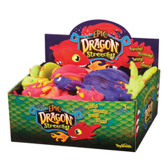 One of Toysmith’s best-selling squish toys, these 10-inch-long full-bodied dragons are filled with sand and have soft, pliable skin. They can be stretched, squished, twisted, and tossed. Available in an assortment of bright colors. All the dragons have raised wings, a long, spiked tail, raised spikes and ridges along their back and head, and a mouth full of dragon teeth.