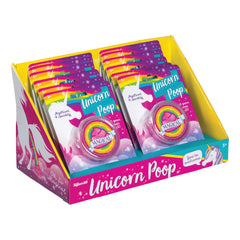 This best-selling colorful fake poop slime toy is designed for laughs. Unicorn Poop is a reusable slime putty that comes in hot pink mixed with shimmering glitter. Designed for tactile and visually pleasing experiences, this toy is individually packaged on a 4.75 x 6.625-inch rainbow and unicorn-illustrated peggable blister card. Made with nontoxic materials, this nonstick putty is uniquely designed for repeated squishing and stretching.