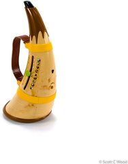 - Blow into the 9" horn to make it roar, bellow, and howl