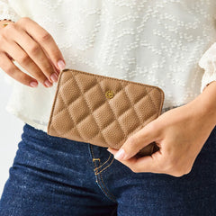 Designed to keep up with your busy lifestyle, the Essential Wallet is your go-to accessory for everyday organization. Its compact design allows it to easily slip into your bag or pocket, ensuring your essentials are always within reach. With thoughtfully placed compartments, including an ID window, slip pockets, a bill slot, and multiple credit card slots, it offers both functionality and style. The secure snap closure and elegant gold hardware add a touch of sophistication, making it the perfect companion for any occasion.