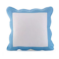This is an 18 x 18 inch pillow sham designed for easy monogramming, with a classic structure that coordinates beautifully with our heirloom quilts. The two-tone sham features a crisp white center bordered by a solid flange or the solid tone sham, both are perfect for embroidery or personalization, that offers a timeless, handcrafted look. Its quilted texture and durable construction make it a perfect match with our heirloom-quality quilts, supporting both elegance and lasting comfort