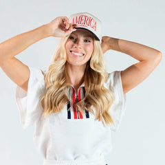 Show your patriotic spirit with this charming Simply Southern® America Hat. Featuring a classic snap back closure for the perfect fit and eye-catching bow embroidery detail, it's the ideal accessory for showing your love of country with style. Whether you're heading to a summer gathering or just want to add a touch of Americana to your everyday look, this hat combines comfort with cute design. Perfect for anyone who wants to wear their pride proudly!