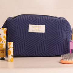 This fully lined cosmo bag is perfect for throwing your makeup, brushes, or hair accessories in for travel. Featuring a textured terry outside with top zipper and Simply Southern logo. Made of 100% polyester