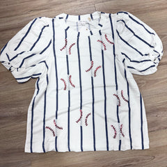 Get up to the plate with the Tina Top, featuring sequin baseballs and elegant puff sleeves. Designed with a relaxed fit, this top blends playful details with all-day comfort, making it perfect for the season’s celebrations.